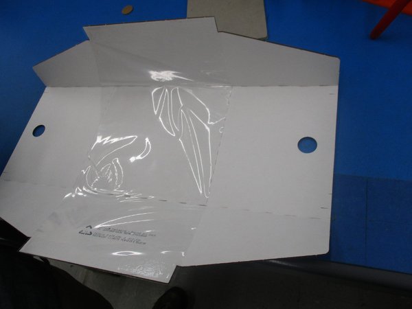 Place the clear acetate stickers (SH-PA0051) as shown half on the sleeve half on the box.