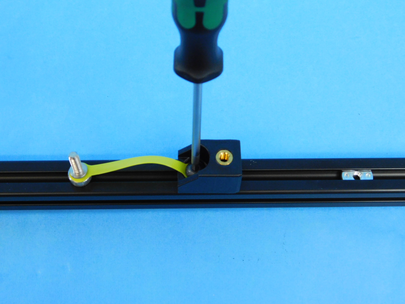 The screw used mounting the Y Mount Chassis should be fed through the end of the thumbscrew leash facing the opposite direction of the thumbscrew before being attached to the frame.