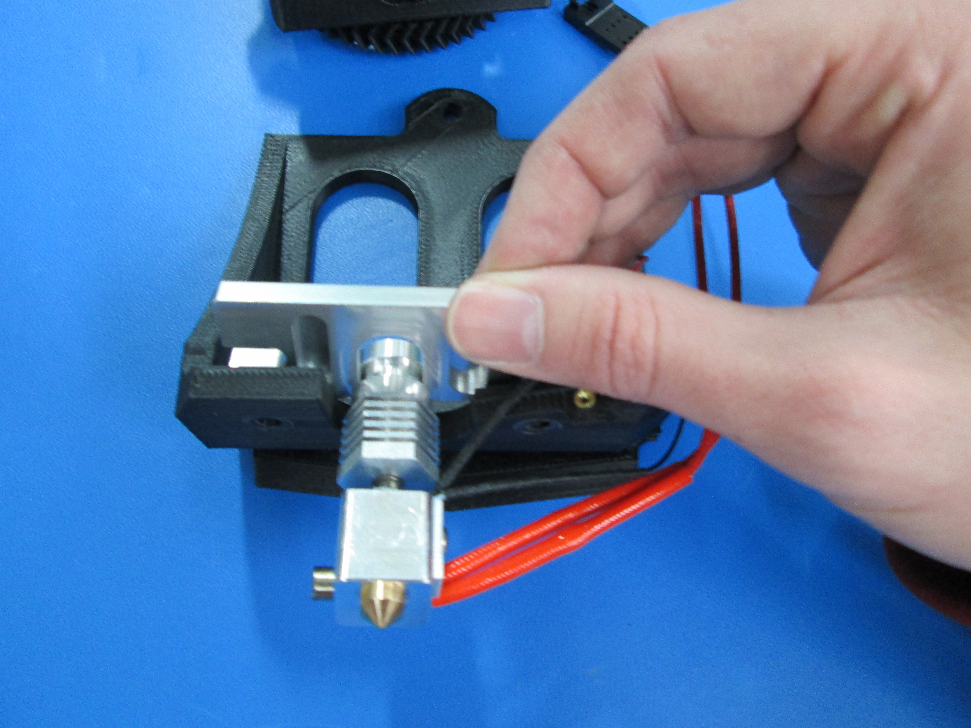 Place aluminum plate onto hex nozzle grooves, then place onto extruder body.
