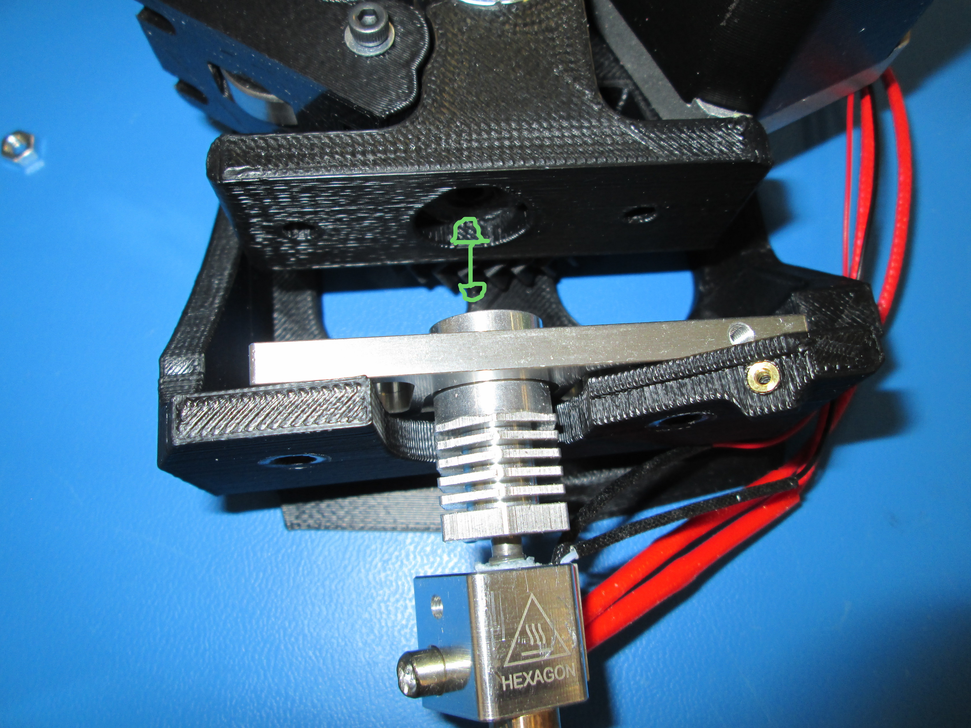 Face hex nozzle forward, tighten M4 screws, check that filament feeds through body and into hex nozzle without catching(you may need to push the aluminum plate to the right while tightening the M4's, so that the filament does not catch).