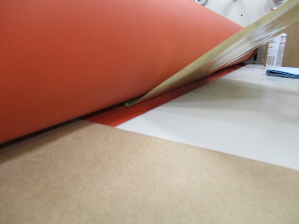Note: Do not peel too much of the backing off of the PEI to ensure the PEI doesn’t fall and touches the glass before it goes through the roller because you will have trapped air bubbles on the surface of the glass.