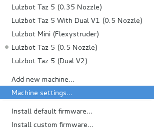 Install the latest version of Cura LulzBot Edition. It is important to have the LulzBot Edition of Cura, as it has preset machine configuration profiles built into it.