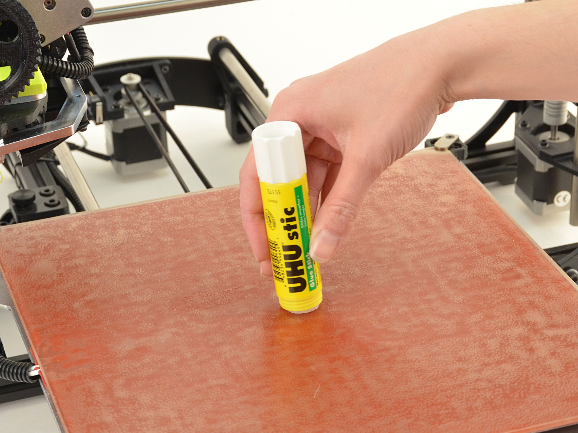 Since NinjaFlex adheres to the PEI print surface exceedingly well, sparingly apply the PVA-based glue stick (included) to the print surface.