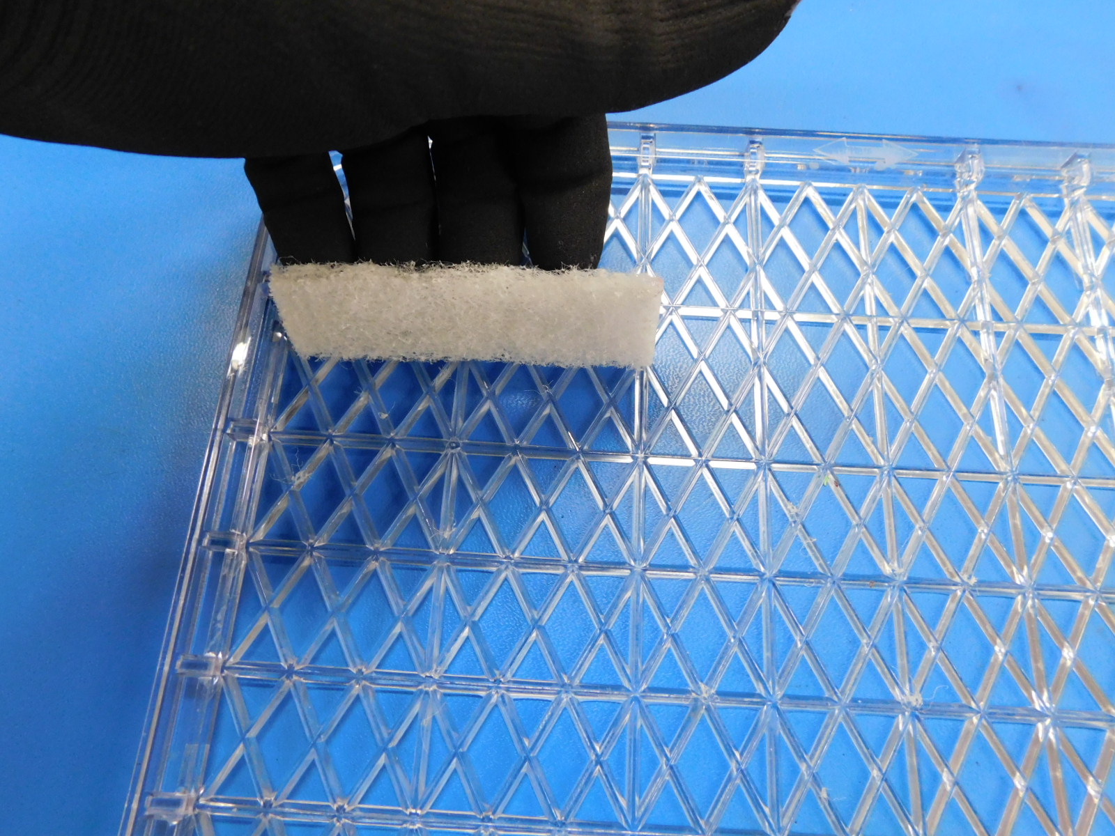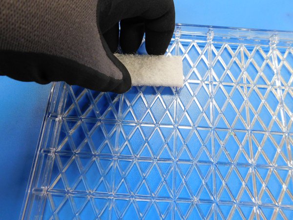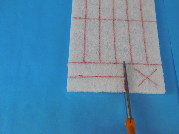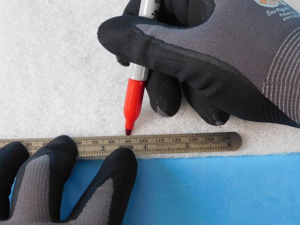 You will need to measure out the individual pads from the main sheet. Each wiper pad will measure 90 mm long and 25 mm wide. You should be able to get 14 pads per sheet. There will be a little left over. Use the red pen to mark the measurements for the pads.