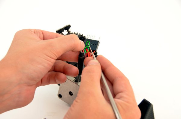 Rotate the hot end so the Hexagon text faces forward, and the thick red wires are coming out of the right hand side of the block.