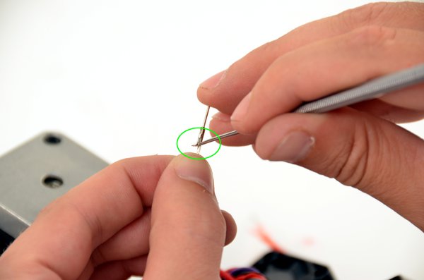 Using the dental pick included with your toolkit, gently push down on the catch that holds the pin in place. This will allow you to remove the existing pins.