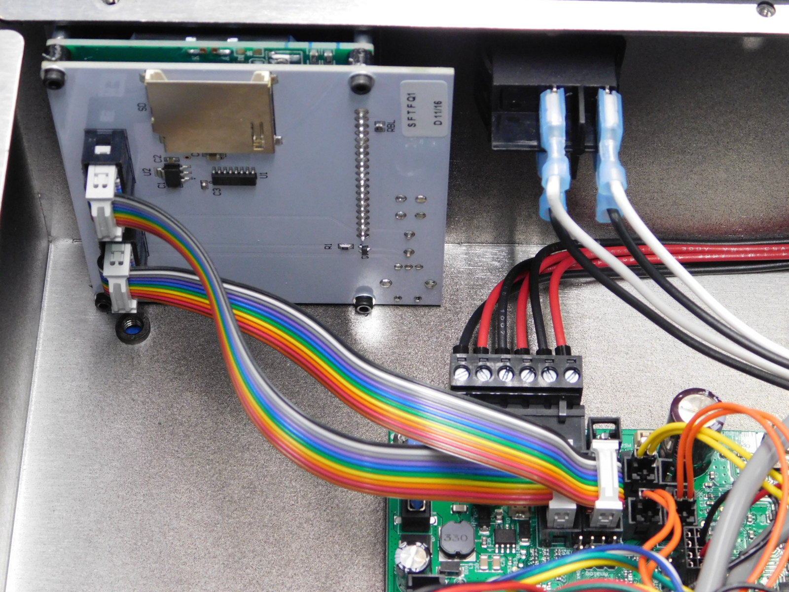 Install LulzBot test firmware; test unit to ensure all motors (6) correctly rotate, all fans (3) correctly rotate, all switches (7) properly operate, and the LCD display properly lights up, makes sounds as the LCD menu is navigated, and the control Knob functions.