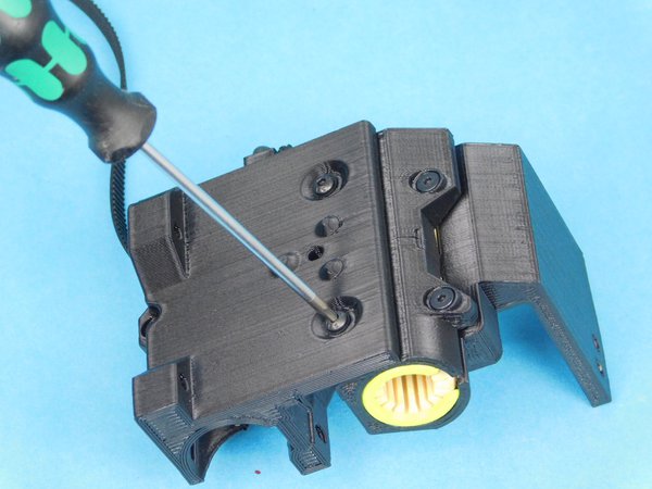 Using a 2.5mm hex driver, thread both fasteners of the tensioner into the nyloc nuts on the X Carriage Sub-Assembly [AS-PR0143]